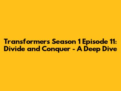 Hey Transformers fans! Let's dive headfirst into season 1, episode 11, "Divide and Conquer." This episode is a classic example of the Autobots facing internal strife while battling the Decepticons. It's an action-packed ride with plenty of strategic twists and turns. Get ready to explore the key moments, character dynamics, and lasting impacts of this pivotal episode. Prepare for a detailed recap and analysis that will reignite your love for the original Transformers series!