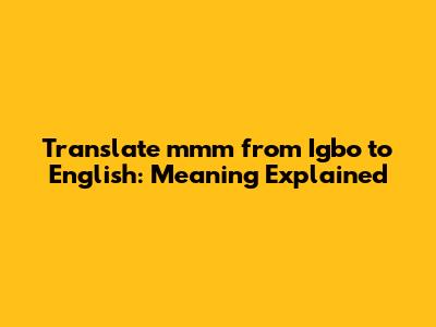 Translate 'mmm' From Igbo To English: Meaning Explained