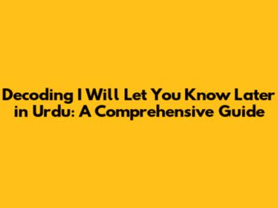 Understanding I Will Let You Know Later In Urdu