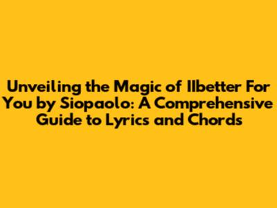 Unveiling the Magic of 'IIbetter For You' by Siopaolo: A Comprehensive Guide to Lyrics and Chords