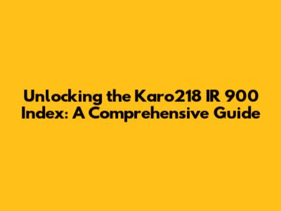 Unlocking The Karo218 IR 900 Index: A Comprehensive Guide