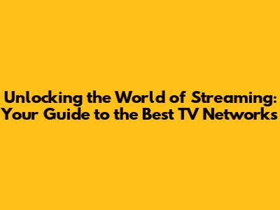 Unlocking The World Of Streaming: Your Guide To The Best TV Networks