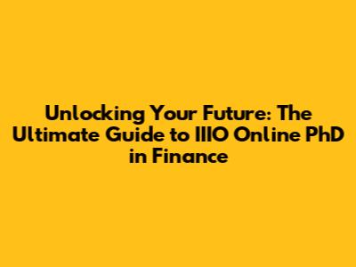 Unlocking Your Future: The Ultimate Guide To IIIO Online PhD In Finance