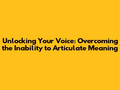 Unlocking Your Voice: Overcoming The Inability To Articulate Meaning