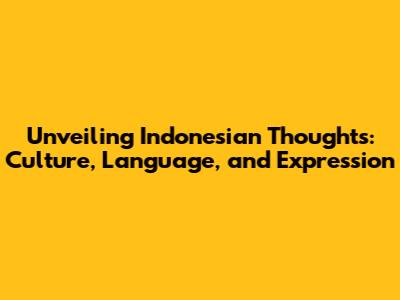 Unveiling Indonesian Thoughts: Culture, Language, And Expression