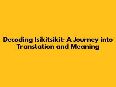 Unveiling 'Isikitsikit': Translation And Cultural Insights