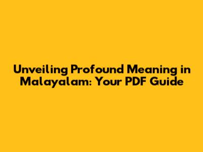 Unveiling Profound Meaning In Malayalam: Your PDF Guide