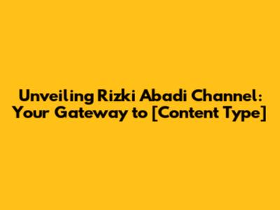 Unveiling Rizki Abadi Channel: Your Gateway To [Content Type]