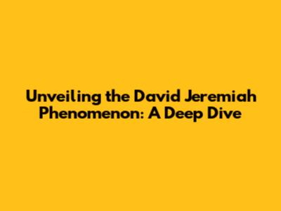 Unveiling The David Jeremiah Phenomenon: A Deep Dive