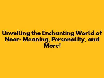 Unveiling The Enchanting World Of Noor: Meaning, Personality, And More!