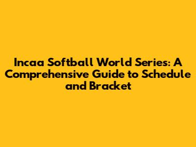 Unveiling The Incaa Softball World Series Schedule & Bracket