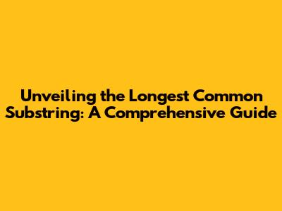 Unveiling The Longest Common Substring: A Comprehensive Guide