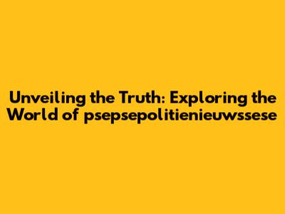 Unveiling The Truth: Exploring The World Of Psepsepolitienieuwssese