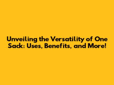 Unveiling The Versatility Of One Sack: Uses, Benefits, And More!
