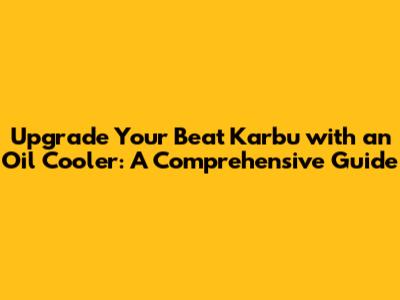 Upgrade Your Beat Karbu With An Oil Cooler: A Comprehensive Guide