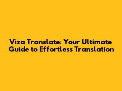 Viza Translate: Your Ultimate Guide To Effortless Translation