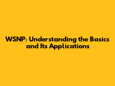WSNP: Understanding The Basics And Its Applications
